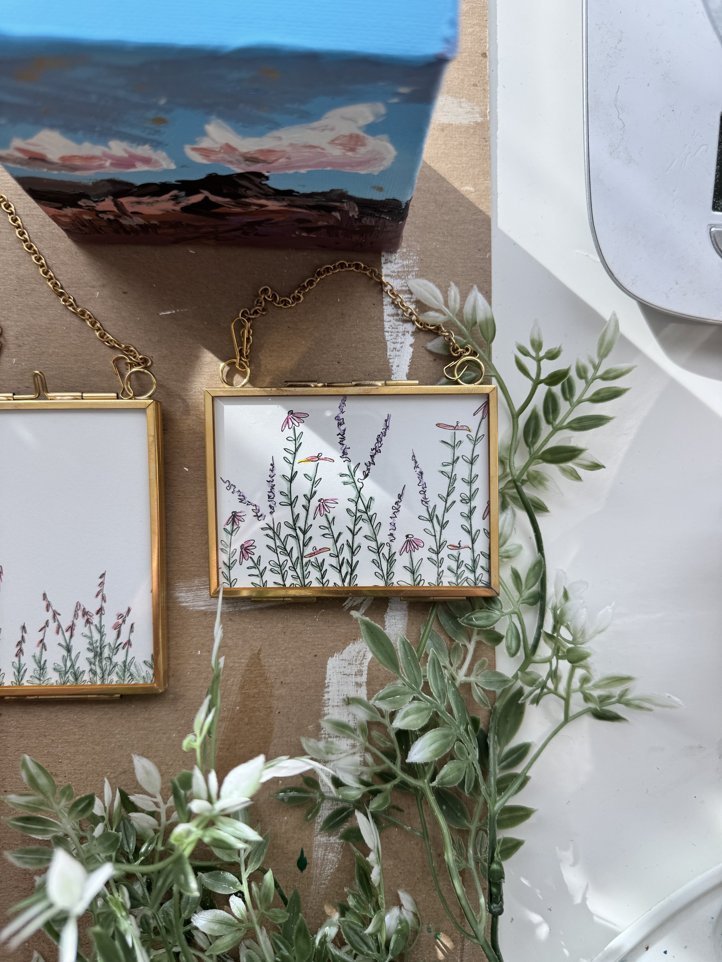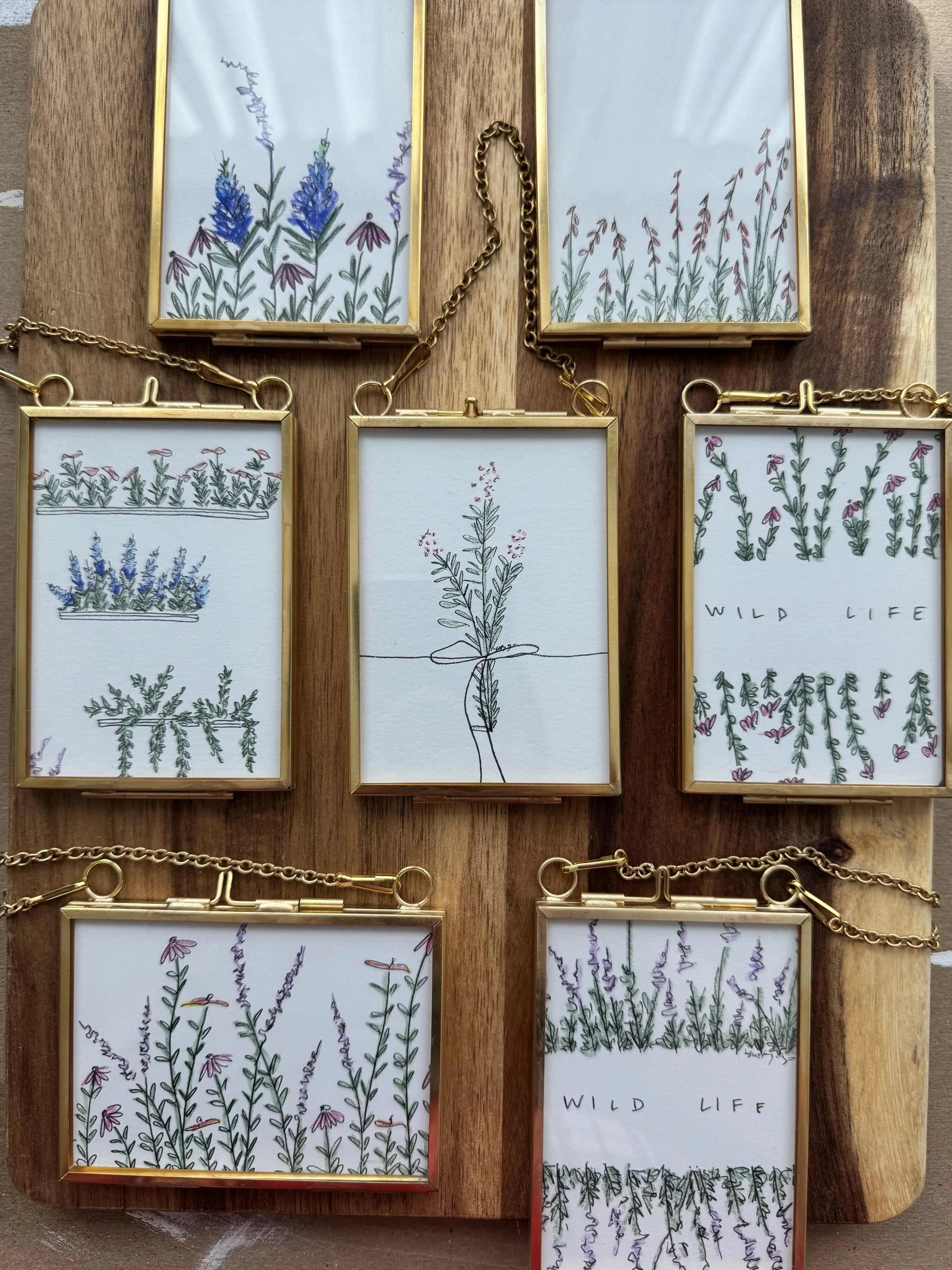 The newest addition to the group - the golden framed art! Typically I would like you frame your own, but I wanted to offer a unique option to not only frame it, but to have it in a frame that can be hung up on the wall or even as a decorative ornament! The series introduces 12 original drawings, with the hopes of adding more as the months rolls along.